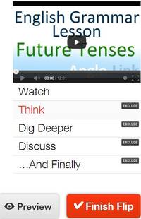 Nach dem Login öffnet sich mit einem Klick auf „Create a Lesson“ ein Suchfenster, in das man den Suchbegriff für das gewünschte YouTube Video eingibt, worauf YouTube-Filme zur Auswahl vorgeschlagen werden. Der erste Schritt heißt also „Find a video“. Der zweite „Select a video“. Mit „Flip This Video“ wird die Auswahl abgeschlossen. Natürlich lassen sich neben YouTube alle Filme von TED.com ebenso verwenden.