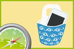 60 Minuten Werkstück für Kreative; aus einem leeren Duschbad- oder Bodylotionbehälter lässt sich in kurzer Zeit eine passende und originelle Halterung für das Mobiltelefon während des Ladevorgangs herstellen. Detailansicht